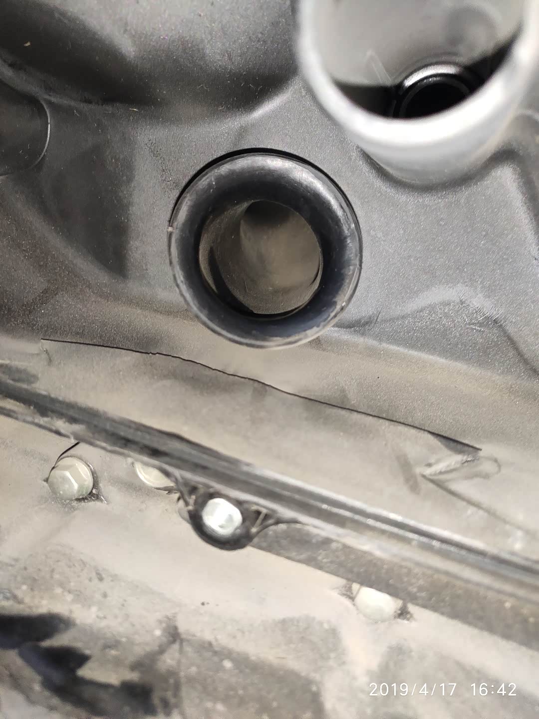 看看机油口(忽略黑色的挡板),锃光瓦亮的金属原色。