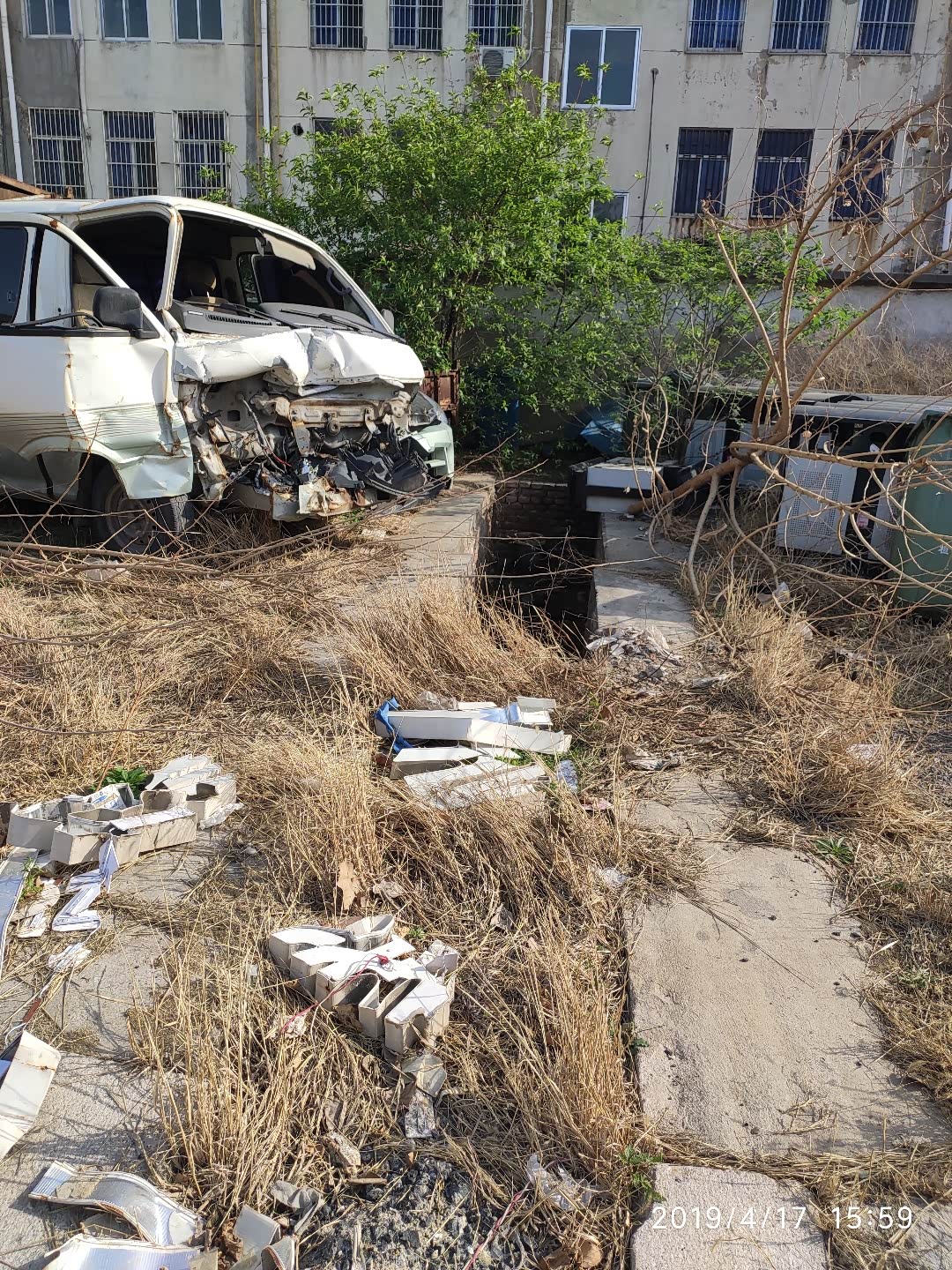 我的御用地沟啊,两边放满了市政的报废车和垃圾桶。