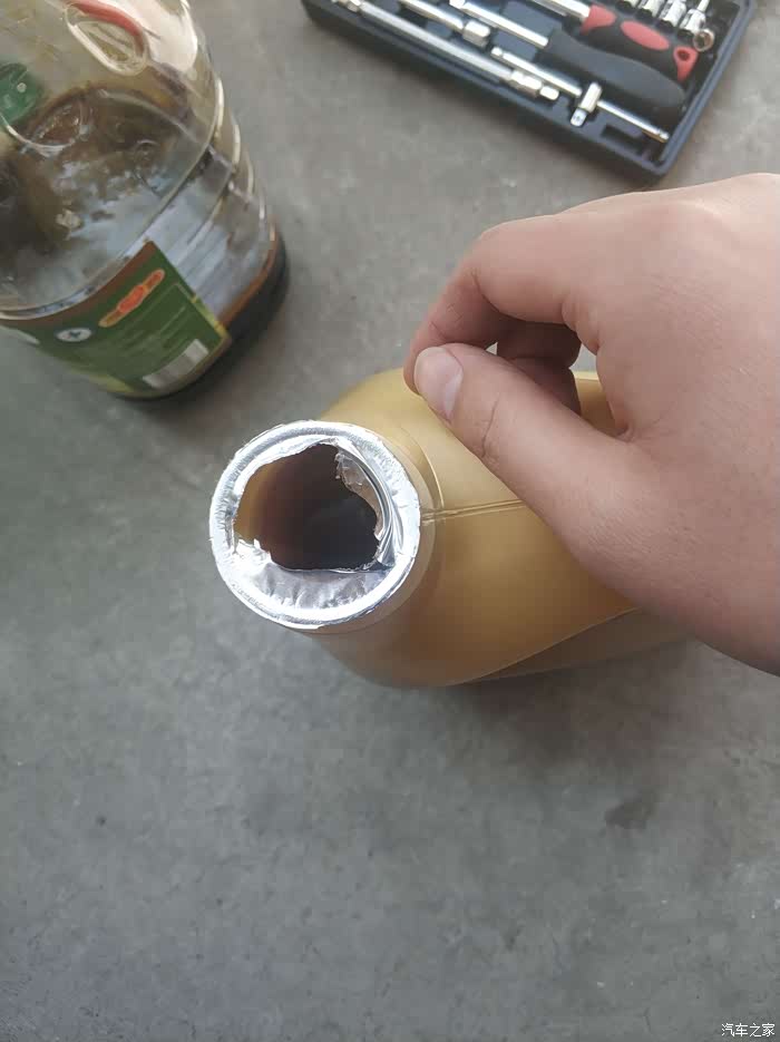 拿出油准备加上,去年在京东买的油,反正破车用这个也不亏,应该够用!