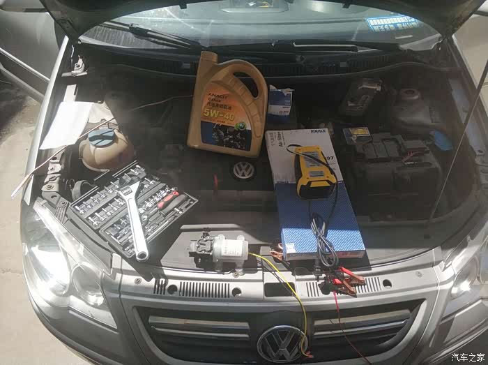 这次保养得车是爸爸的09年大众波罗,本次保养我准备用油泵抽油的方式放油,因为波罗的机滤是在上面的,所以不用抬车了,然而这只我一厢情愿的想法,实操中总是充满了意外!而且本来我准备了32MM的套筒和扳手用来拆卸机滤盒,然而刚要用的前一天时候却找不到了,翻遍了家里也没有,无奈只好临时去买了一个大扳手来用,结果这把充当临时工的扳手在以下的工作中起到了意想不到的作用,暂且按下不表。