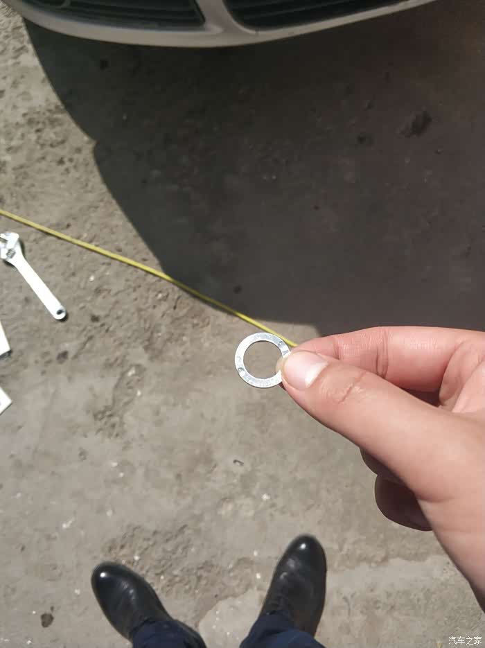 然后把废油都倒进桶里啦,然后就在盆地发现了这个我心心念得垫片,NND螺丝已经拧上了,还好没倒油呢,再次钻车底拧螺丝