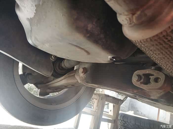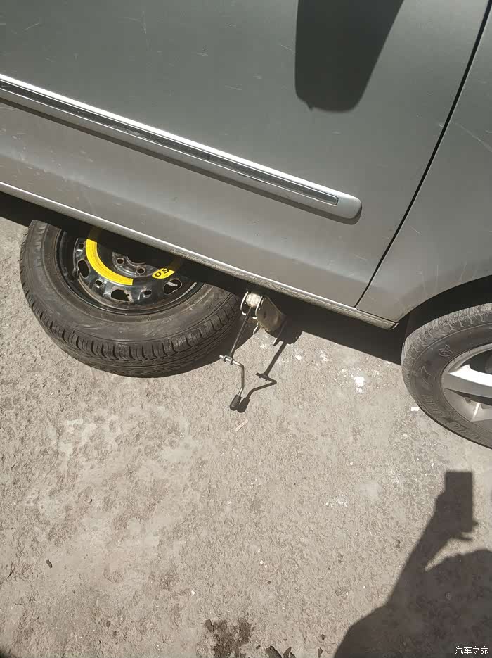 不得不说大众原车带的千斤顶是我用过的随车千斤顶里面最好用的,升举很快,因为没准备抬车所以也没准备安全支架,用备胎顶一下吧,聊胜于无,奉劝大家自己动手还是做好两手准备的好,安全工作一定要做到位!