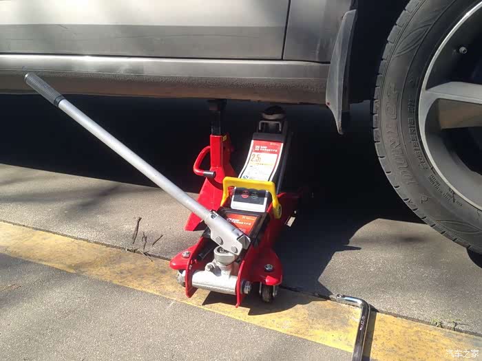 找到门槛下的顶升部位,千斤顶顶起,加入安全支架。
