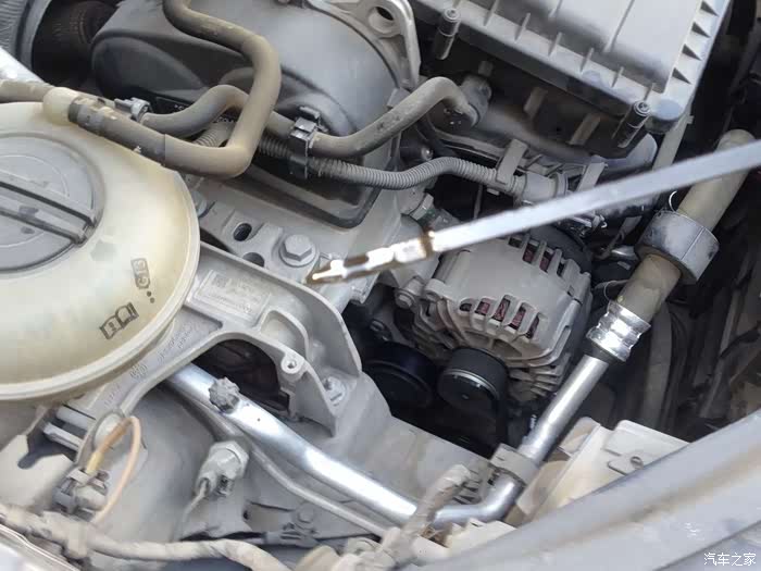 不知道机油需求量,先灌下3.7L,点火静止看机油高度