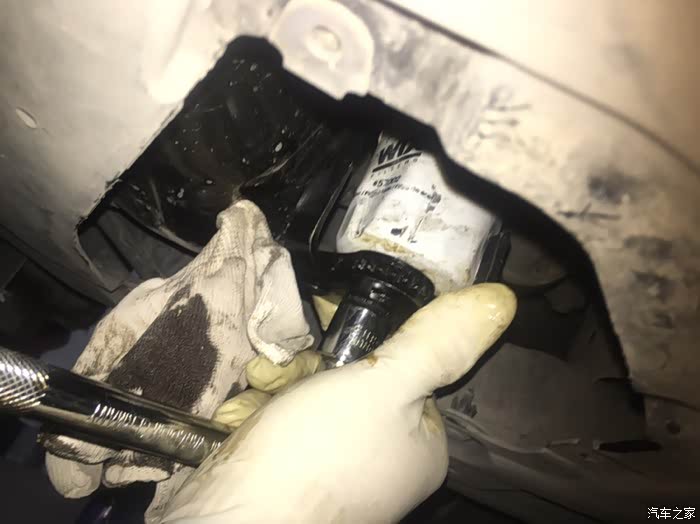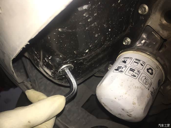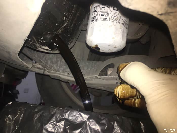 放的差不多拧机滤,上次途虎帮我拧的太紧了!好了,中途去吃个晚饭,让它自己慢慢流吧