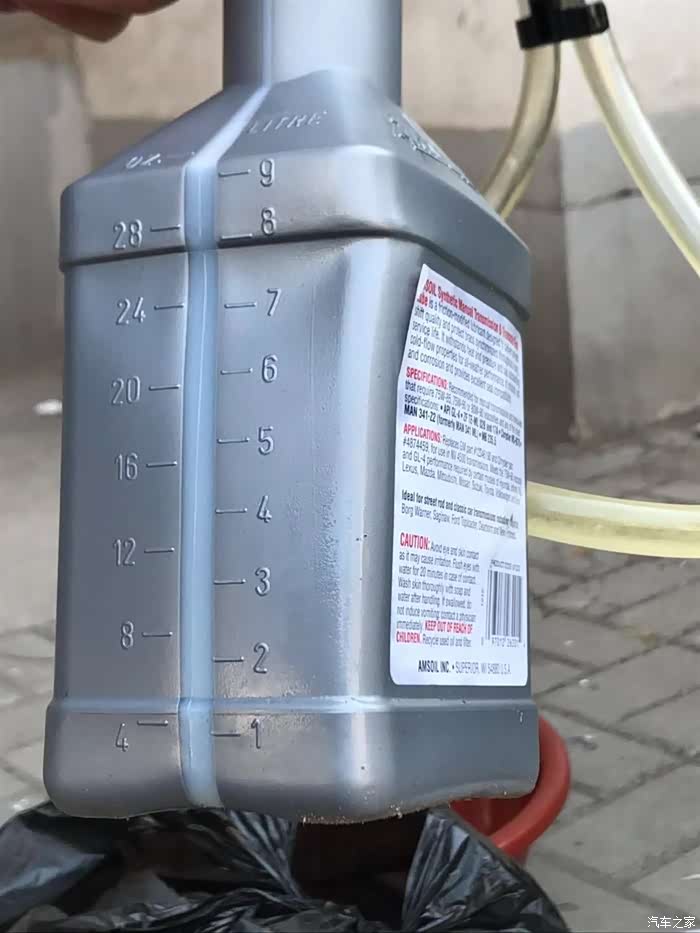 找了一个机油瓶周转,我就可以加第二瓶之前知道脸盆里面放出来多少油,800+700大概不到1.5L,说明书是2.1L,之前关于加多少的问题,都是说加到溢出来为止。前天自动档车型是放出来1.9L,可是加的时候只加进去大概17L是流出来了,(从排气口加的)