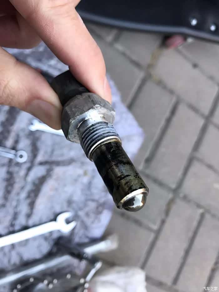 这是拆开的倒车开关信号,之前说的第一个状况是查了很多都说是17MM的扳手,百度知道也有人回复说是17MM的,无奈我举着扳手过去的时候,哈哈,卡不上,我想骂人…………