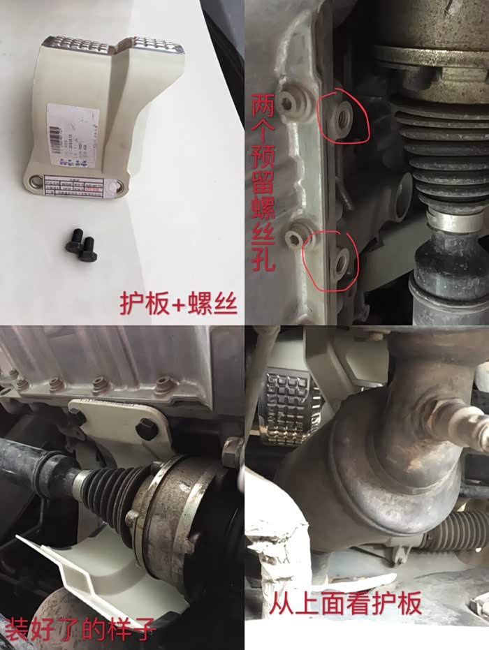 说桑塔纳的转向球笼套渗油是三元催化烤的,一些高配车有球笼套护板,其他低配车型都减配了。这算是增配吧,管他有没有作用装了再说,这螺丝五元钱买的,我自己都嘲笑了自己好久,关键是懒得去车底看尺寸。