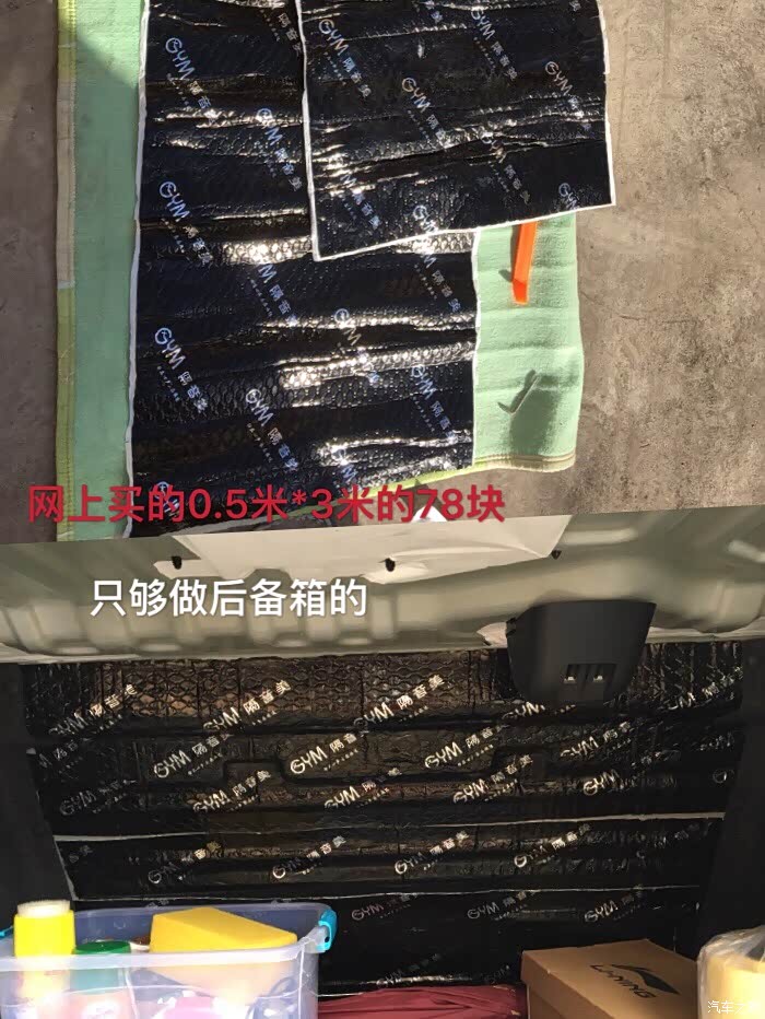 自上次追尾4s店修车回来后,车内噪音就很大,尤其是后面,准确的说我这不是做隔音而是做隔风,网上买了3米隔音棉勉强够做后备箱和两个后轮,做完后安静了许多,不吵了。