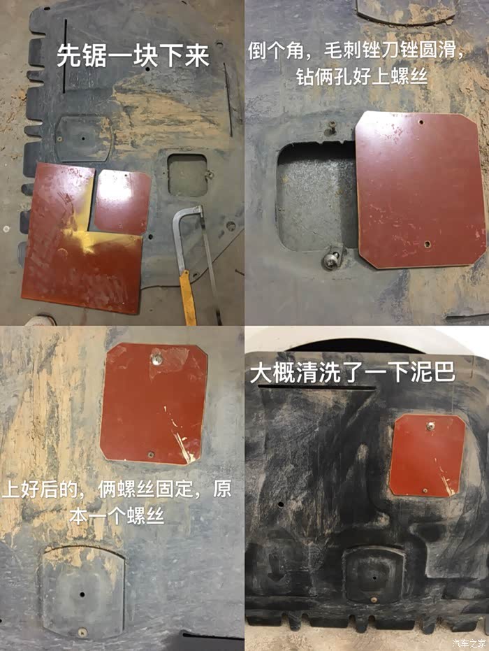 接下来就是下护板了,之前走烂路刮底了,放油口小挡板刮烂了,本来还可以粘在一起的,结果被家人当垃圾给扔了,只好找块塑料板裁了一个,没找到黑色塑料,就这颜色的,那天找到黑色自喷漆喷一下就好看了,有强迫症的