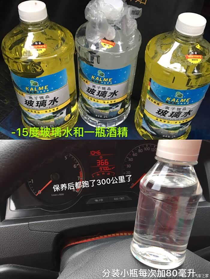 零下15度的玻璃水再兑些酒精冬天就不会冻了,酒精挥发呢一星期加进去80毫升酒精,反正酒精不要钱。