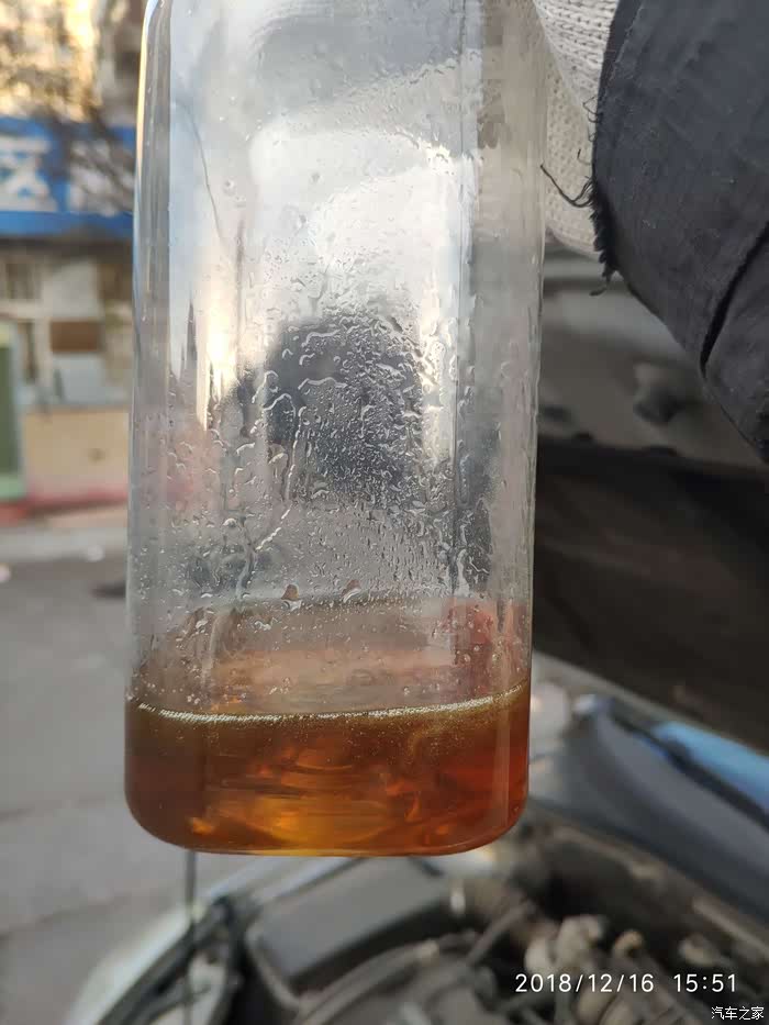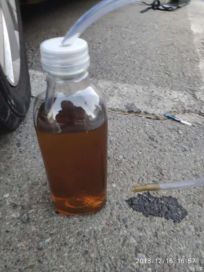 这个是抽出来的旧油,颜色很深,新油应该是淡黄色或者接近透明的白色