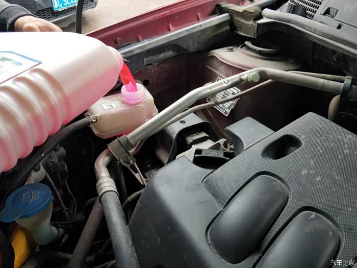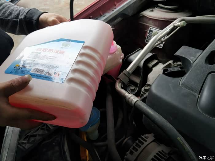 需要接近7.5升,两桶加完剩半升的样子,加完之后,等水温正常,风扇转动就没问题了,才结束