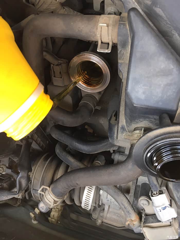 继续wix机滤,橡胶圈涂点机油,由于是水平装机滤,所以机滤里无法提前加机油