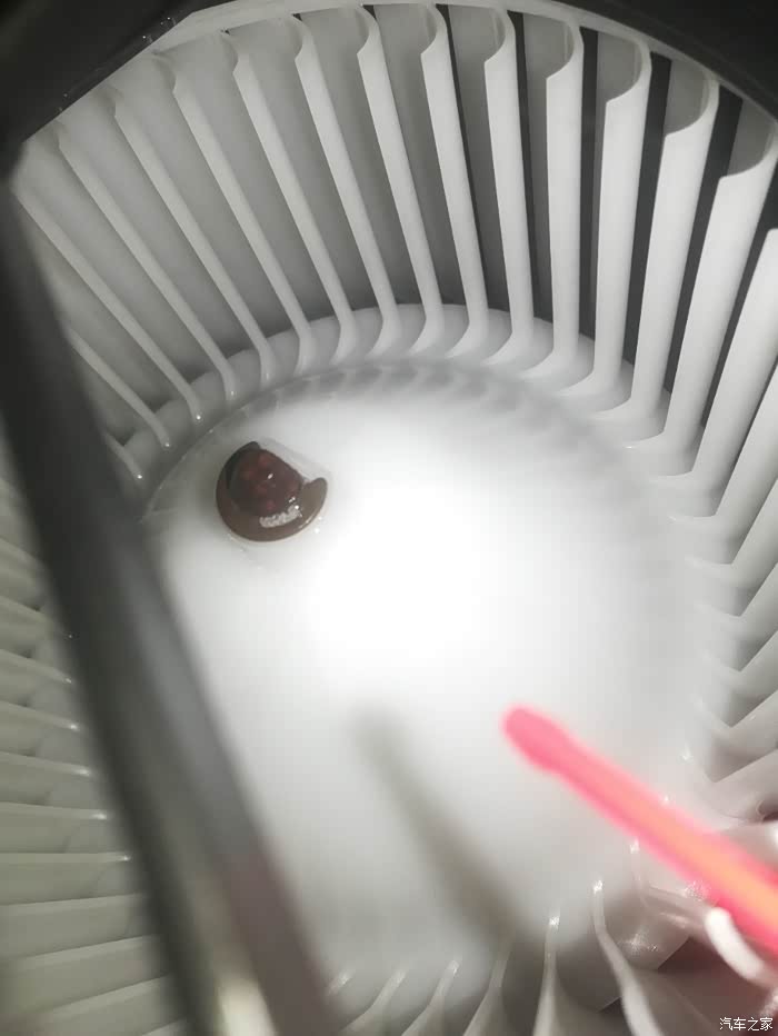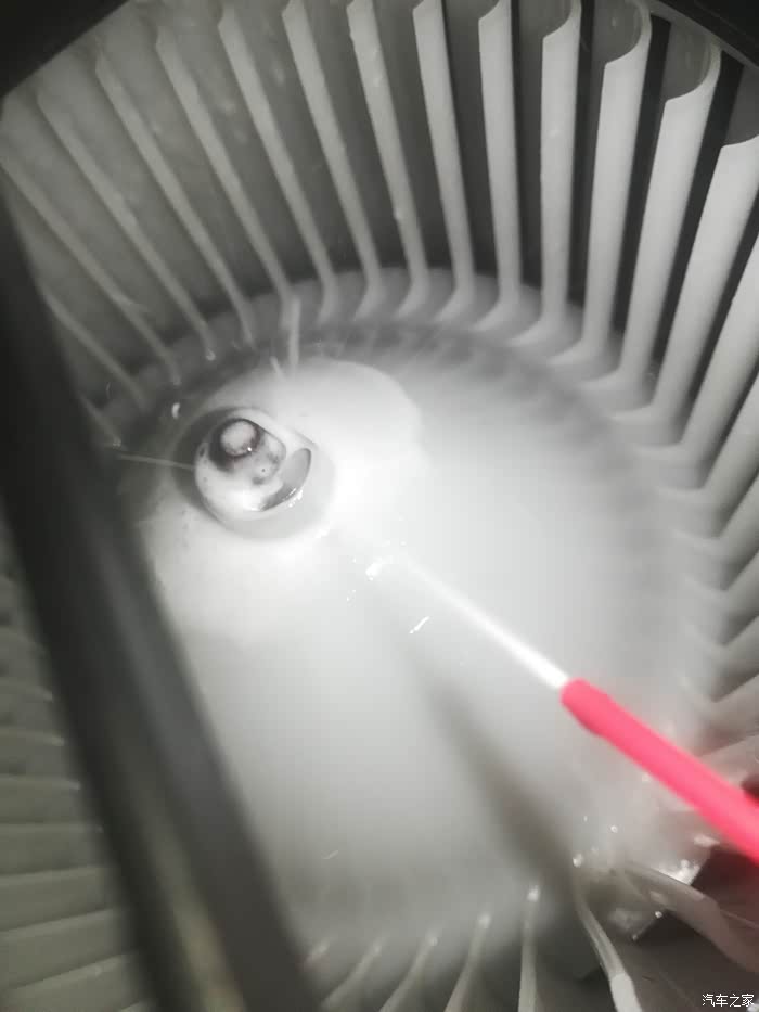 空调鼓风机内部,看这个固定螺栓锈的。