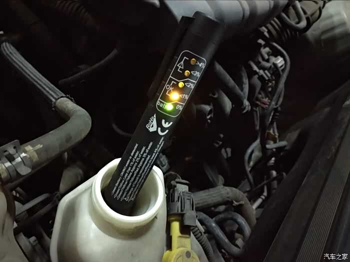检查刹车油,刹车油通常是2年4万公里更换,太久了含水量增加,在连续刹车的情况下容易产生气泡导致刹车失灵,目前含水量低于1%还OK,不过这个年限还是应该更换刹车油了,安全第一,本来刹车油也便宜