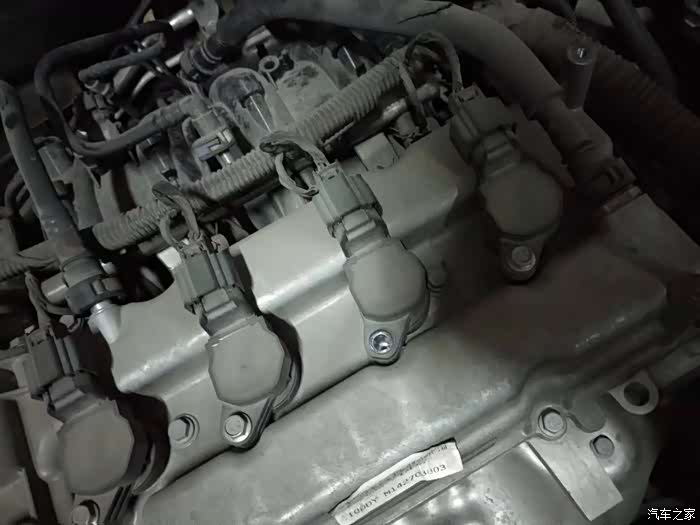 拆下发动机盖板之后看到4个点火线圈,拆掉其中一个来检查火花塞,使用10的套筒