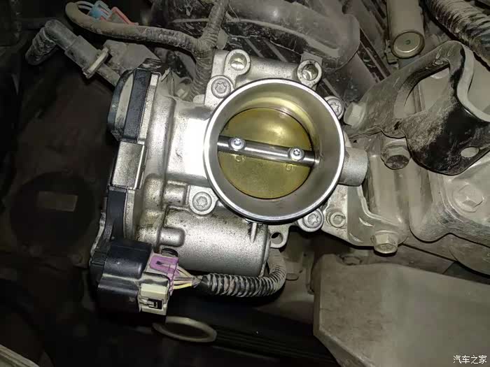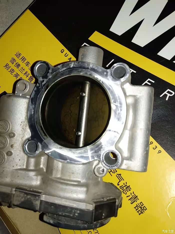 清洗节气门,这图是已经清洗过的,要使用专用的节气门清洗剂,不要使用化油器清洗剂,会损伤节气门金属材质,拆下节气门用内六角螺丝刀,4颗螺丝