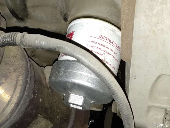 这是从发动机上方拍照的,拆装机滤非常方便,这是上次的原厂机滤,和新买的曼牌机滤一样,使用902规格的机滤扳手刚刚好