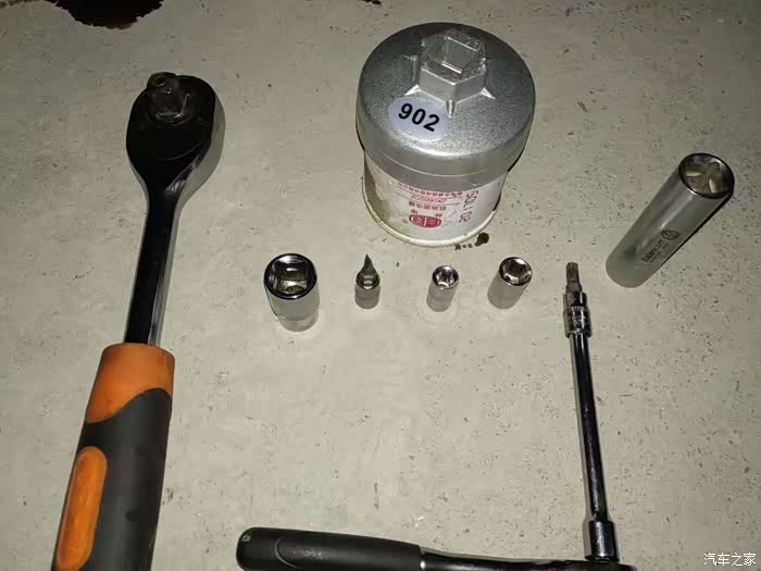 最后用到的工具汇总,一个13号套筒拆油底壳螺丝,一个10和7号套筒拆点火线圈和进气道方便拆节气门,还有一个内六角螺丝,902规格的机滤扳手,以及16号火花塞专用磁性套筒,棘轮扳手当然少不了