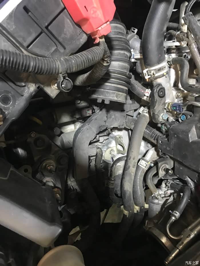 首先呢是拆空气滤芯器的盒子,把节气门清洗了,十万公里没清洗,然后开空调怠速的时候转速会有波动,本来怠速是700到750之间的,开空调就变成600,这样子抖一下。