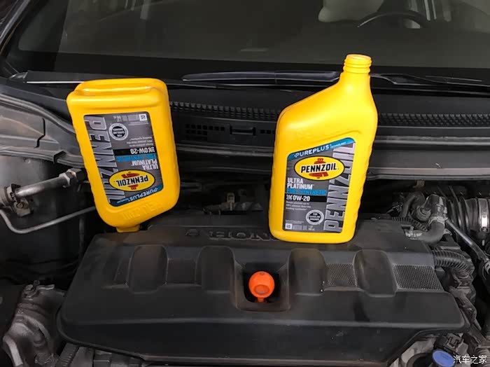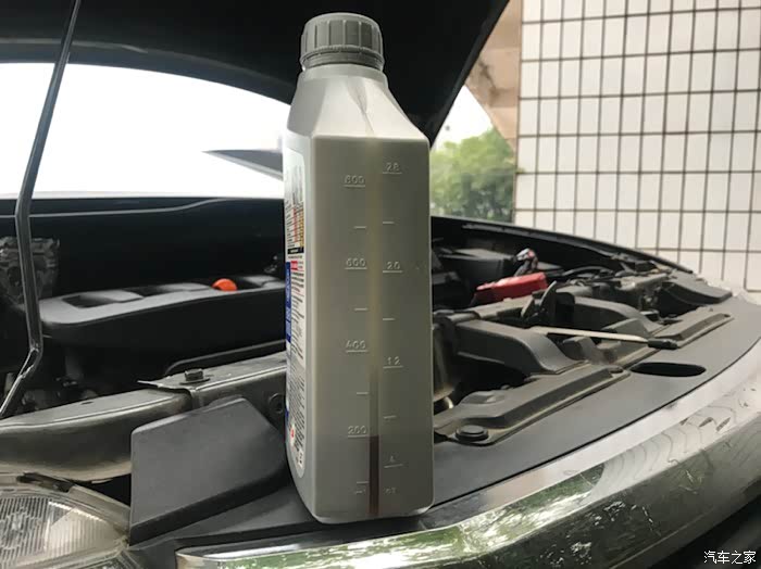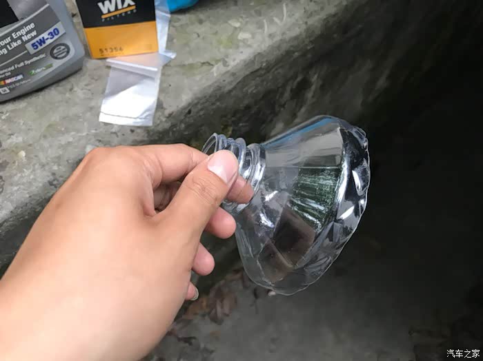 第四瓶先留个200毫升,结果发现机油尺一点都没有油,吓得我赶紧把剩余的一起加进去了,平时在外面换3.5升都刚好,这次自己斜着放看来放的更干净