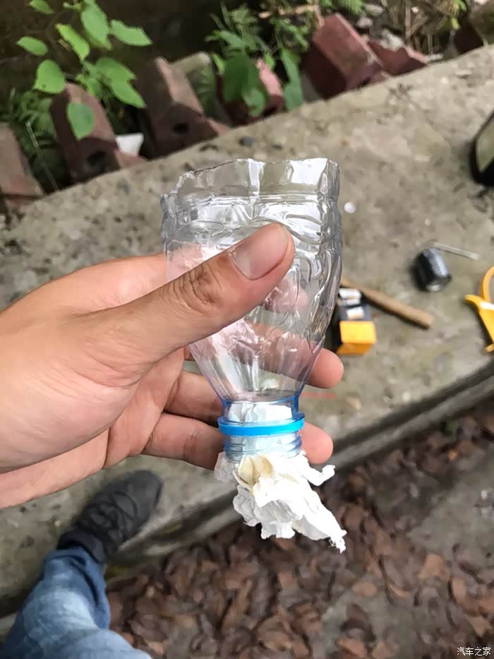 还是把喝的矿泉水用螺丝刀割断,又现做了一个漏斗,非常合适。用卫生纸把水擦干净