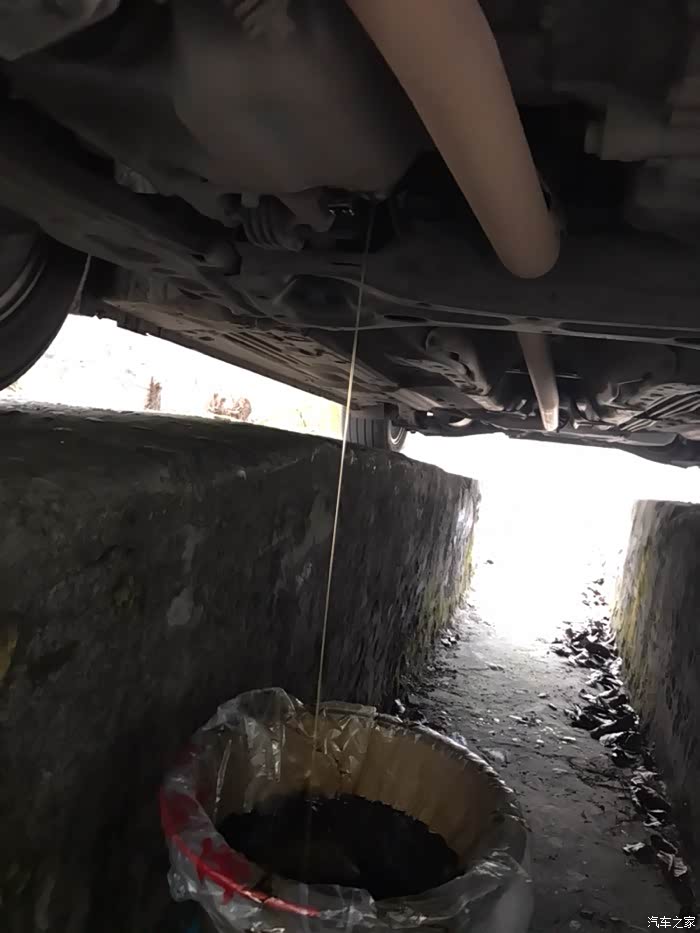 因为车是斜的,机油放的很快,我顺便把奥迪车剩下的一升的嘉实多拿来冲洗