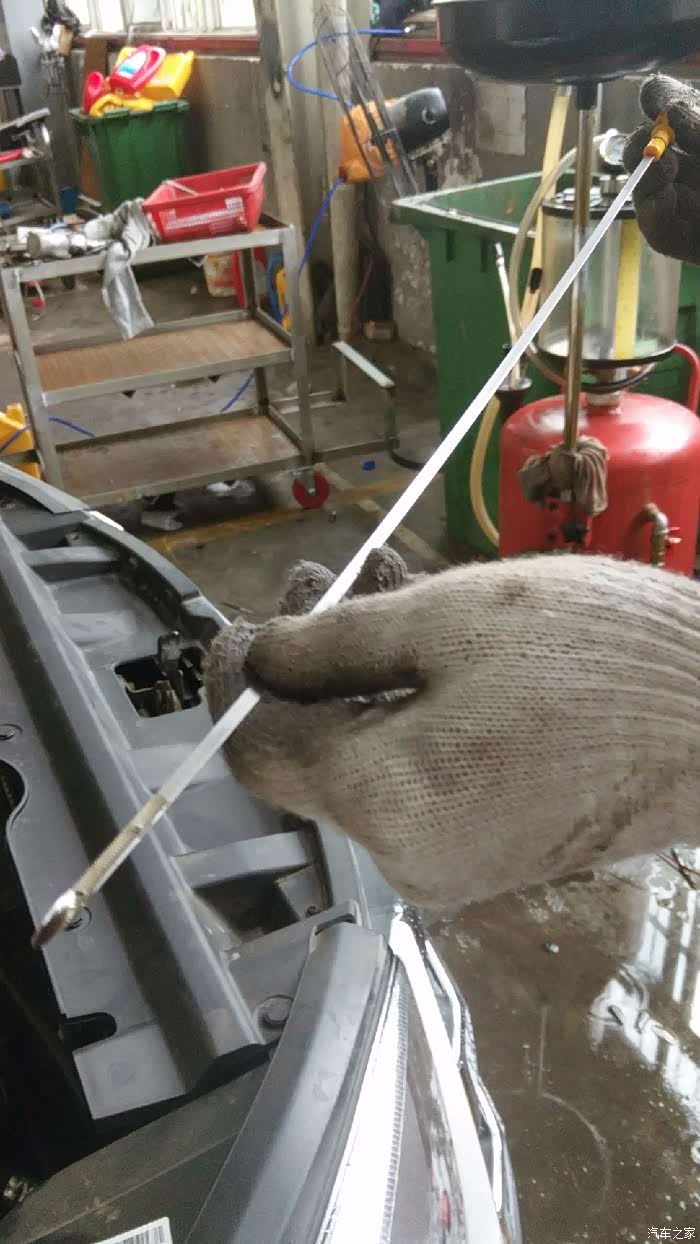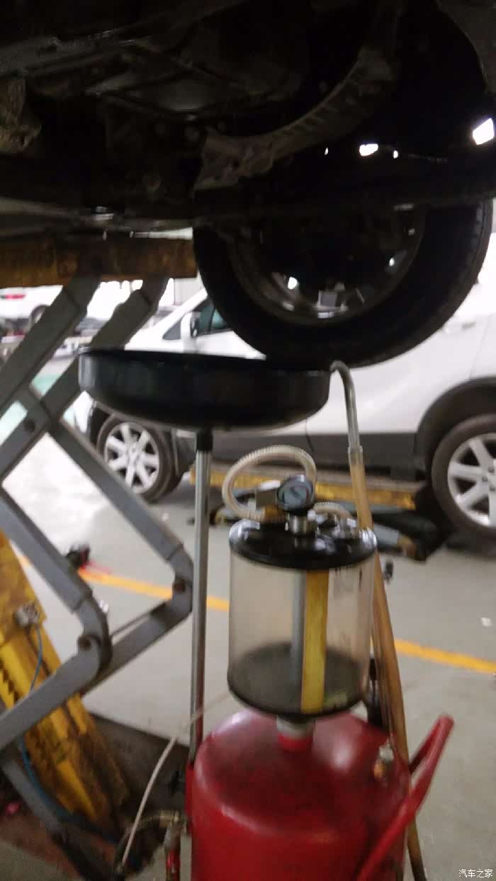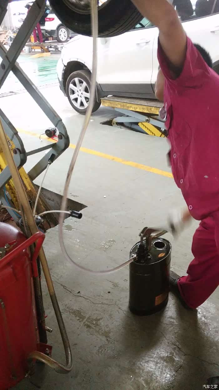 原来是从下面用压力打进去的,我还以为跟加机油一样,从上面倒呢