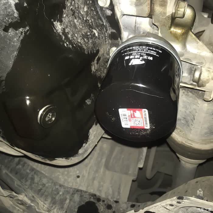 拧上新的机滤+放油螺丝,机滤我用手拧紧的,在用三脚抓拧了一下,因为没有扭力扳手,就按自己分寸稍微拧了一下,拧的太紧怕小皮圈变形