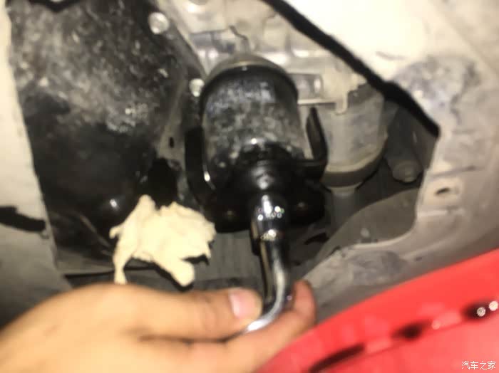 开搞,爬下车底,拧放油螺丝和机滤