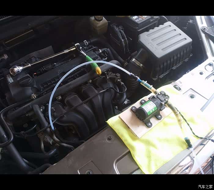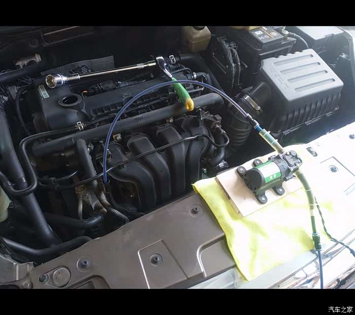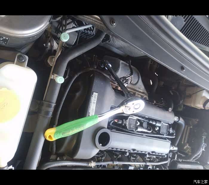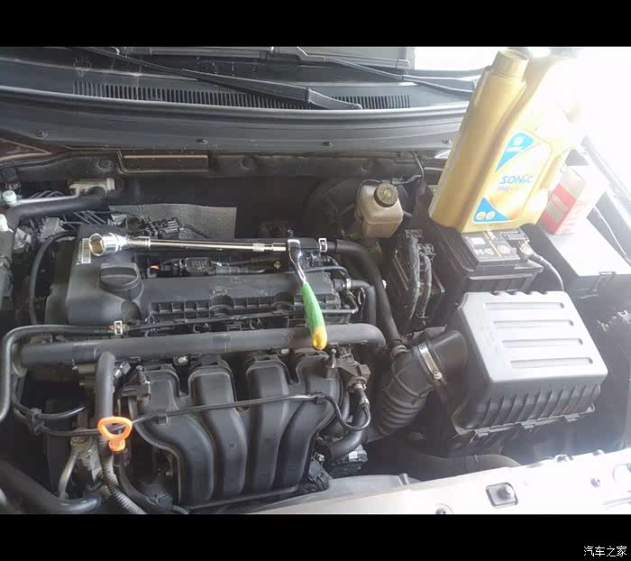 27号的套筒+加长杆+棘轮扳手,请忽略发动机表面的喵星人爪印旧机油抽油清空、空气滤清器检查除尘