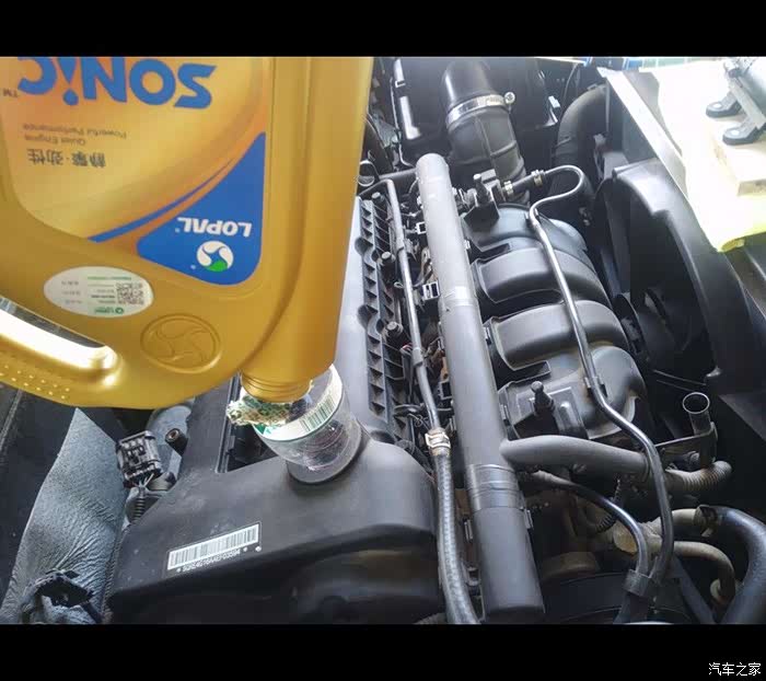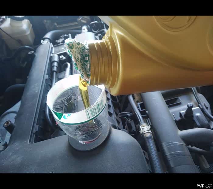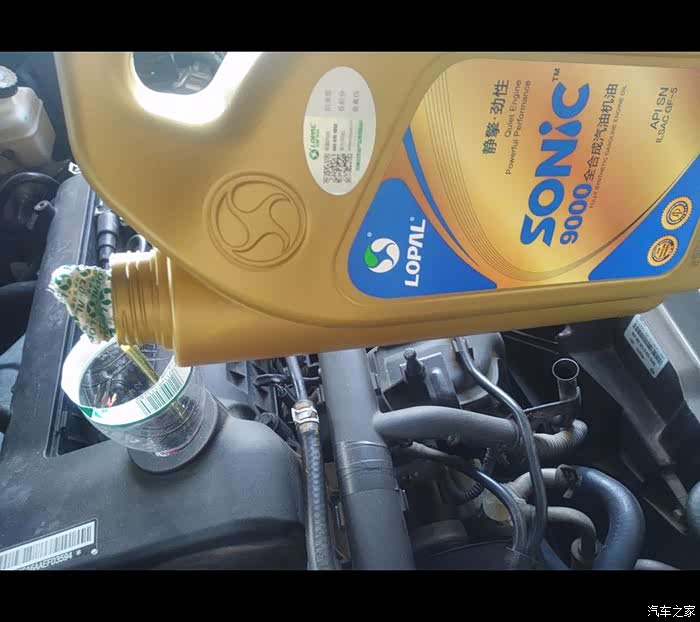 好了,全部加完,不剩一点一滴;完工,检查油位、机滤口等清扫现场