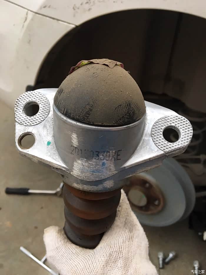 上面大头是铁的,装的时候抹些水,好装,不敢摸油,会腐蚀橡胶的,水也少抹一些,别生锈了减震,是不是很啰嗦,细节决定成败。
