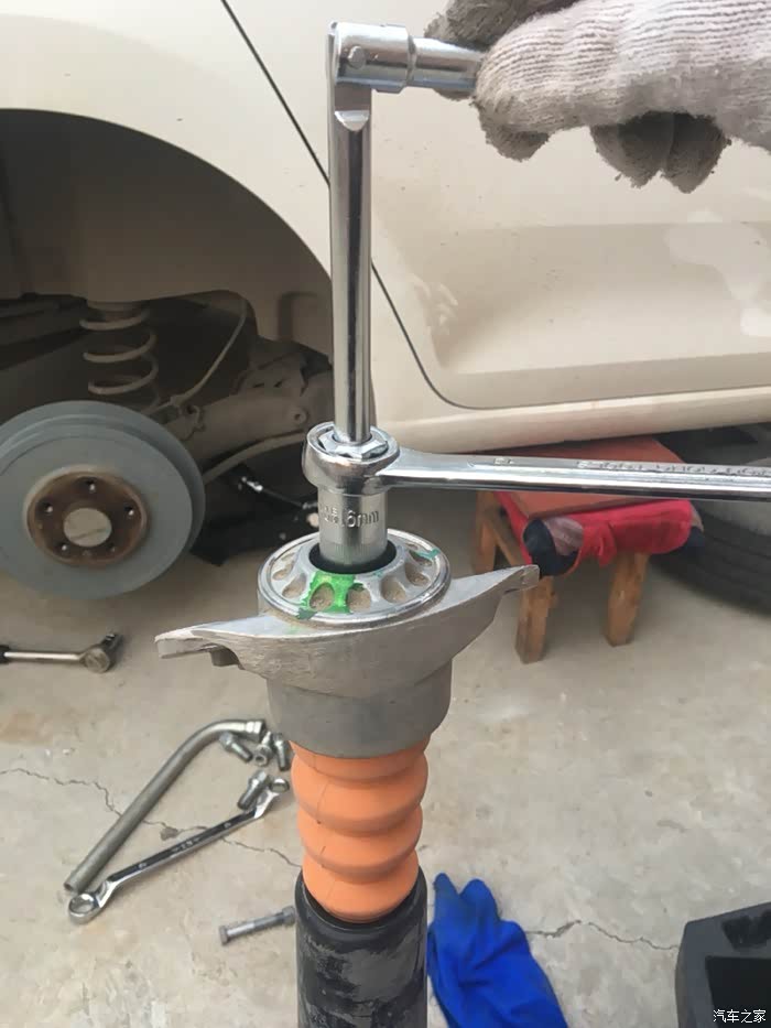 更改后的16mm,再次提醒下,如果有桑塔纳车主搜到这个帖子,需要专用工具要卸减震器螺丝不要在网上买所谓的大众专用,用不了的,除非你也可以和我一样换17为16套筒。切记。