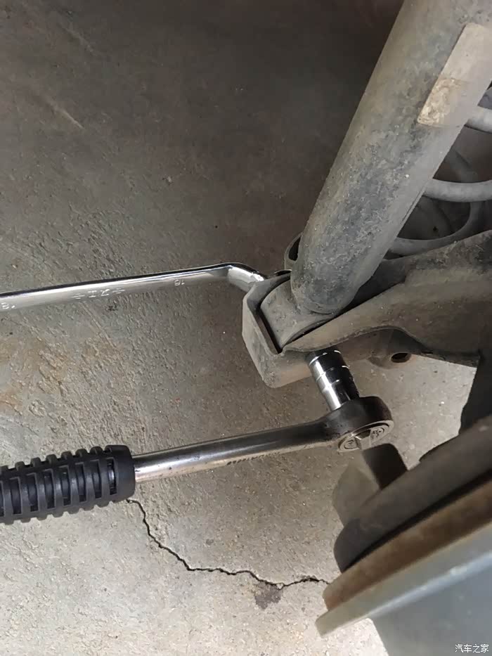 下面的一个闭口16板子、一个套筒16加棘轮扳手,卸螺栓,这个时候就要应到千斤顶配合一下了,螺母卸着没什么问题,就是螺栓吃着力不好取。