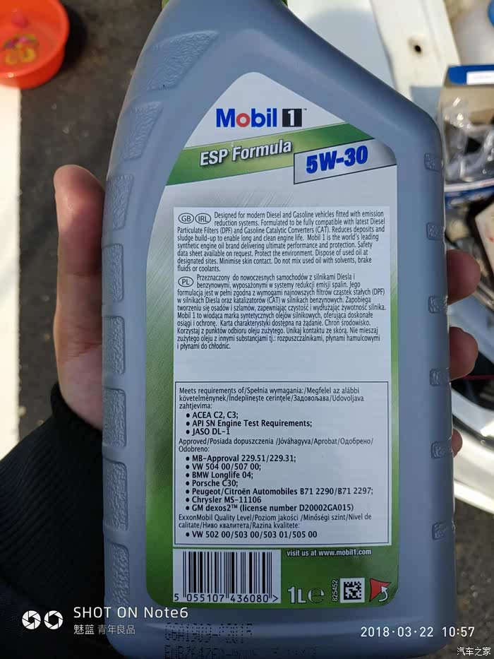 今天天气很好 闲来无事 脑一热干脆去保养吧,上次去年九月份两万两千公里保养的,目前两万六千公里可以去保养了,14款自动大众宝来车,简单介绍下使用过得机油,首保免费儿子店198机油,之后金嘉护儿子店,三保370儿子店,四包自己带jd全球购sl530灰壳,今天更换全球购美孚ESP530 听说以前是上海大众售后机油,第一次尝试也是第一次使用美孚机油,网上流传,始于美孚终于美孚,今天感受一下。不废话了上图