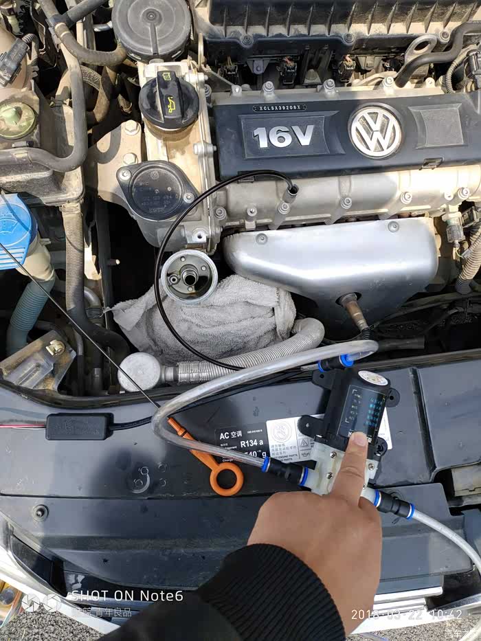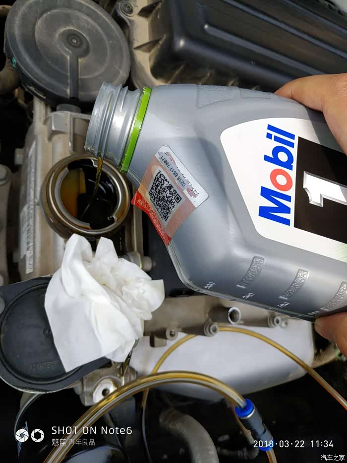 图片凌乱请见谅,第一次搞难免紧张。美孚上车跑了十几公里没感觉到比上锅的sl灰壳530噪音大呢,感觉差不多