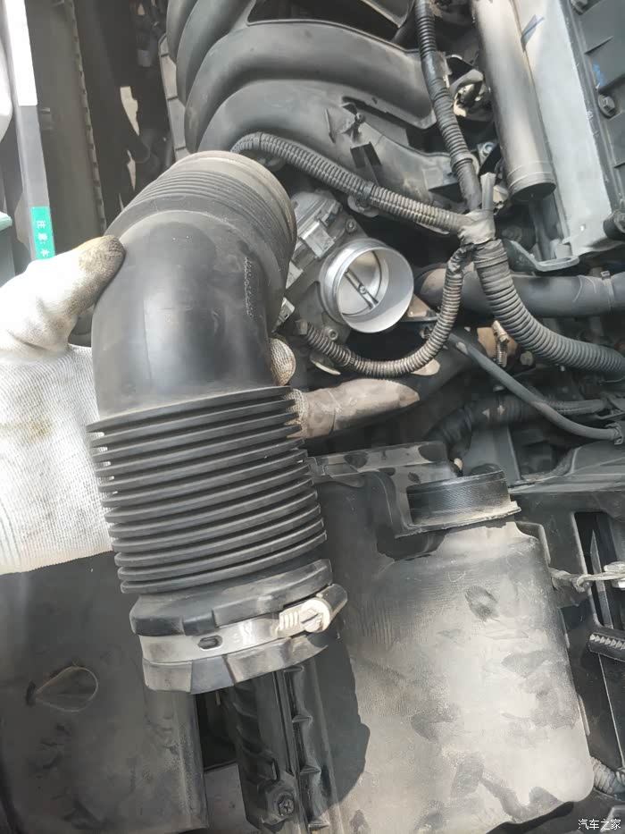 每次保养必须要清洗一次节气门。这次卸下来的通风管。