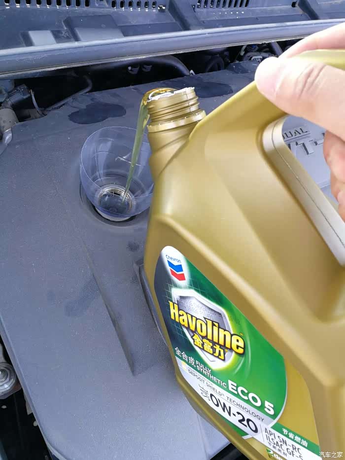 最爽的时刻来了,相信大家都是非常期待这一刻。先加了3.8。启动后检查油尺,再看看是否需要加入。