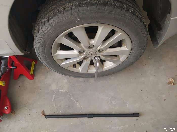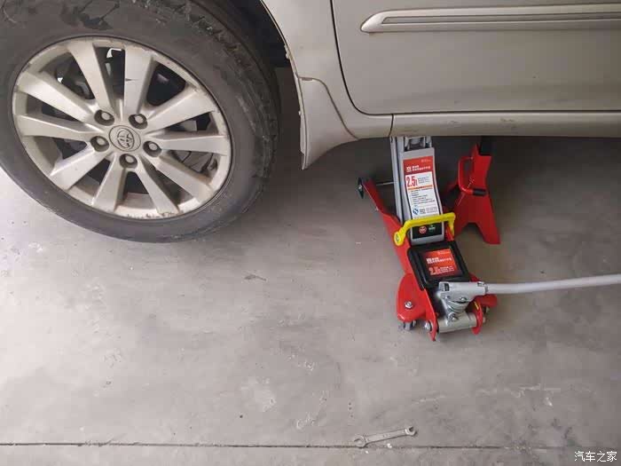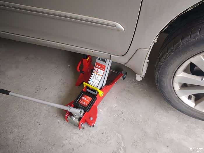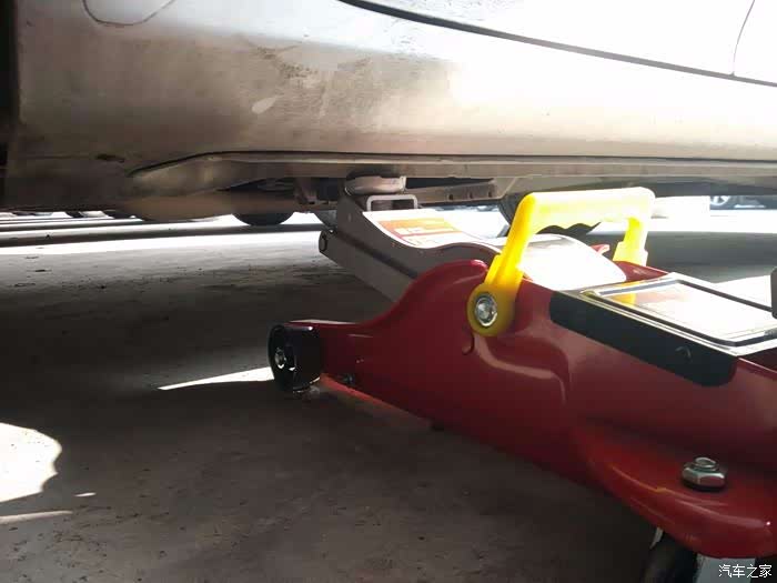 拧松轮胎螺母后,找好顶升的部位,带2个槽缺口的部位就是。