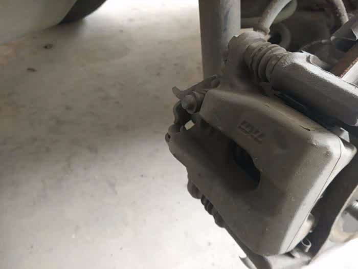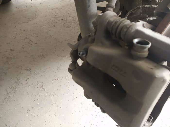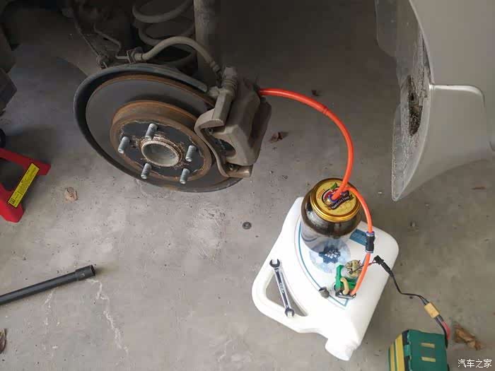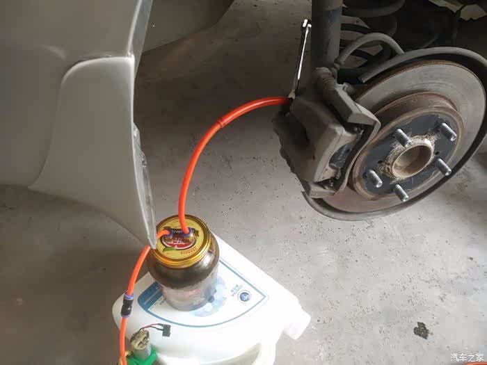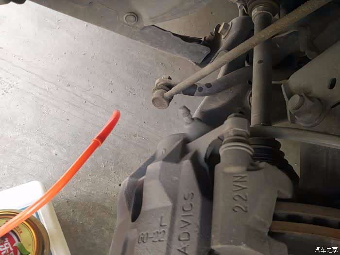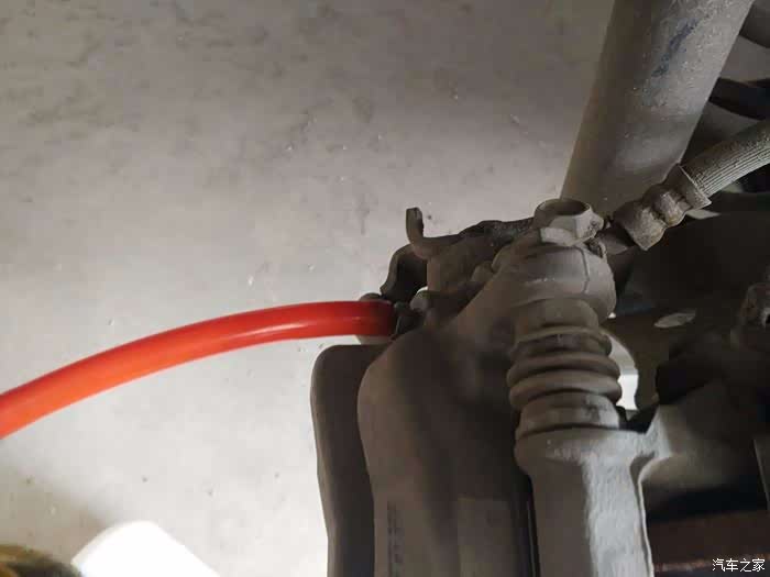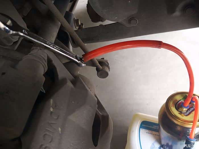 找到碟刹阀体上的放油阀,有一个橡胶帽的就是。