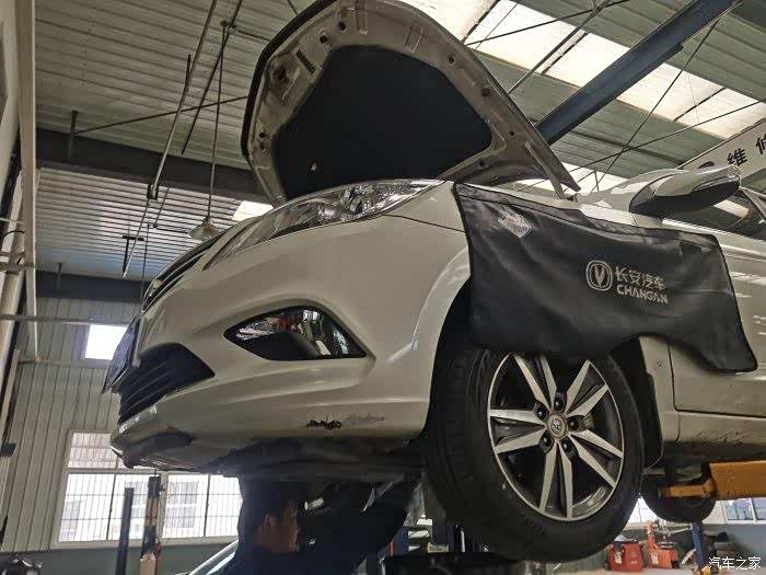 长安逸动保养项目进行中,更换机油滤芯,清洗发动机!