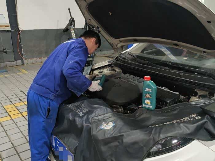 逸动保养项目进行中,更换机油,机油滤芯,为发动机保驾护航!