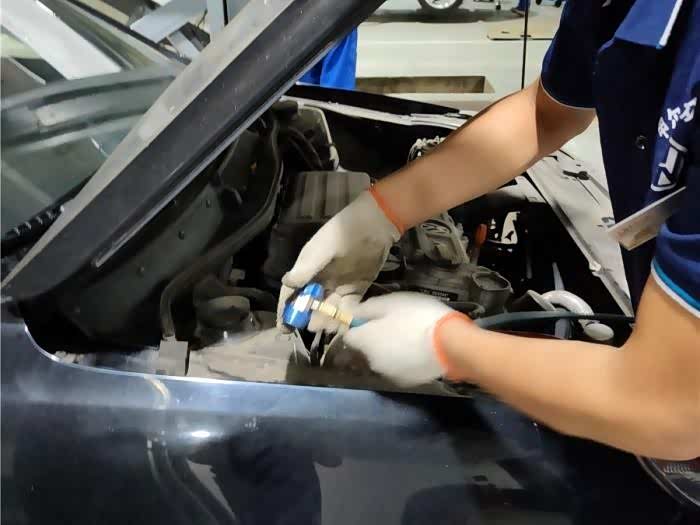 朗逸空调不制冷,系统缺冷媒导致,给它加冷媒!