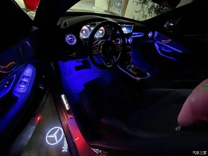多姿多彩!为奔驰C级加装发光涡轮出风口及车门投射灯等!