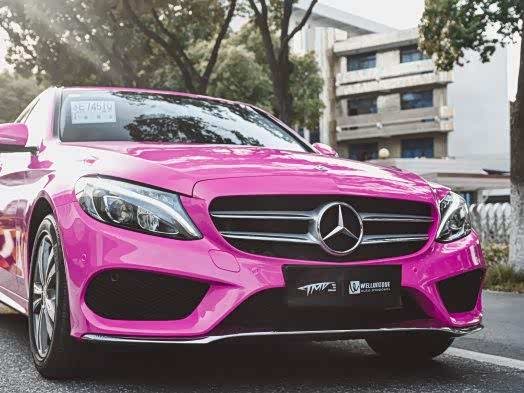 奔驰C级改色后闪亮整条街!独特的颜色展现它独特的魅力!