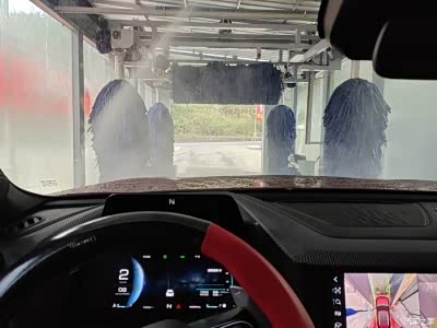 洗干净又下村喽!大狗上自动洗车机。