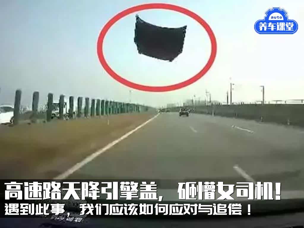 高速路天降引擎盖,砸懵女司机!遇到此事,应如何应对与追偿!