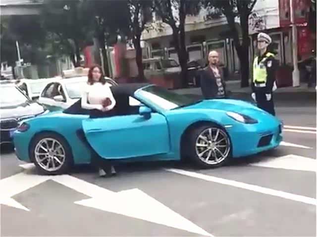 保时捷违章被拦停,面对指责满脸不屑,副驾驶女友的动作亮了!